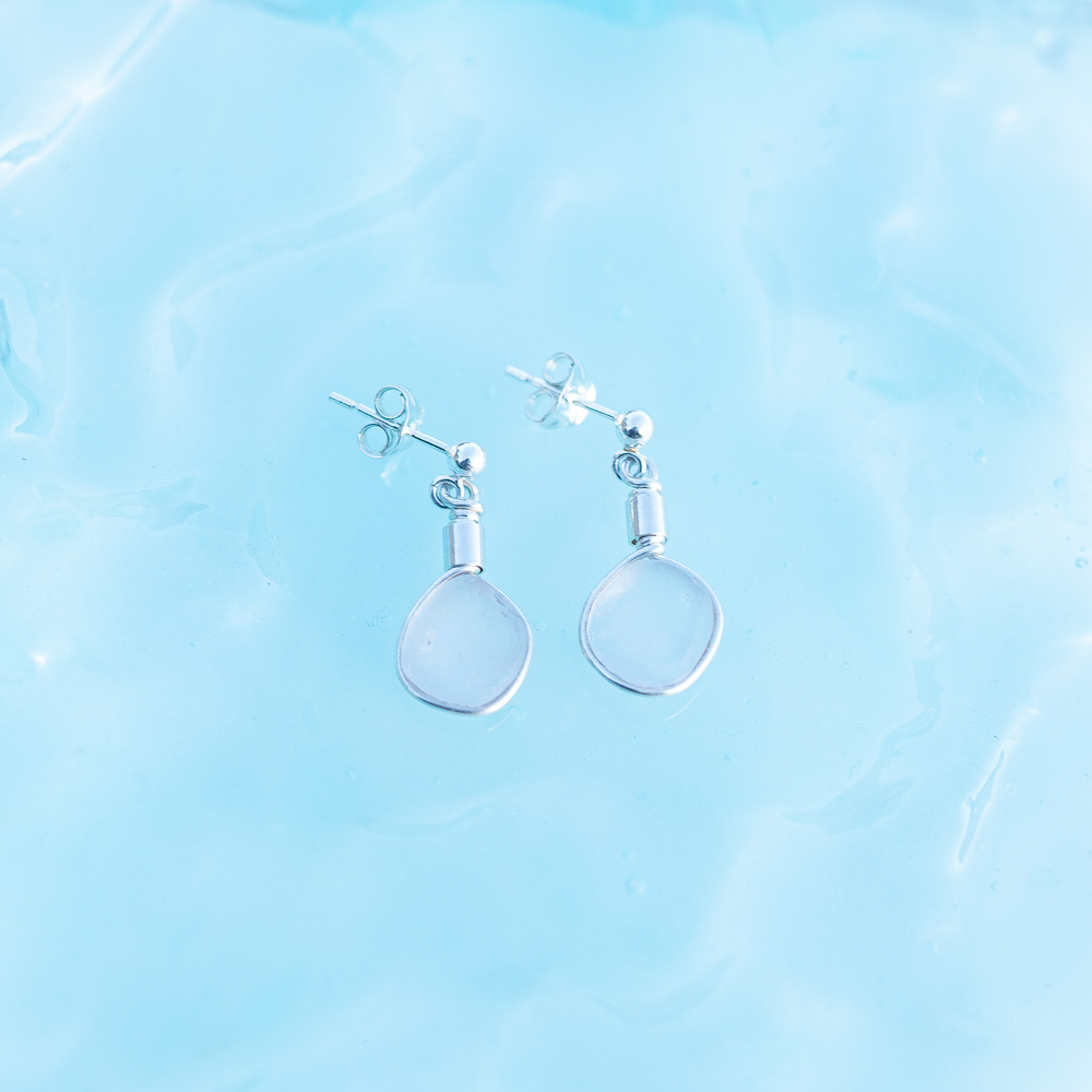 Sea glass stud earrings – White