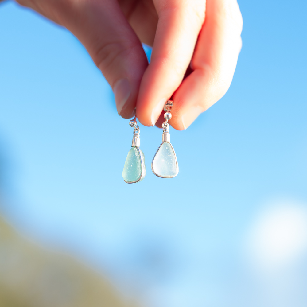 Sea Glass Drop (including stud) approx. 25mm x 10mm