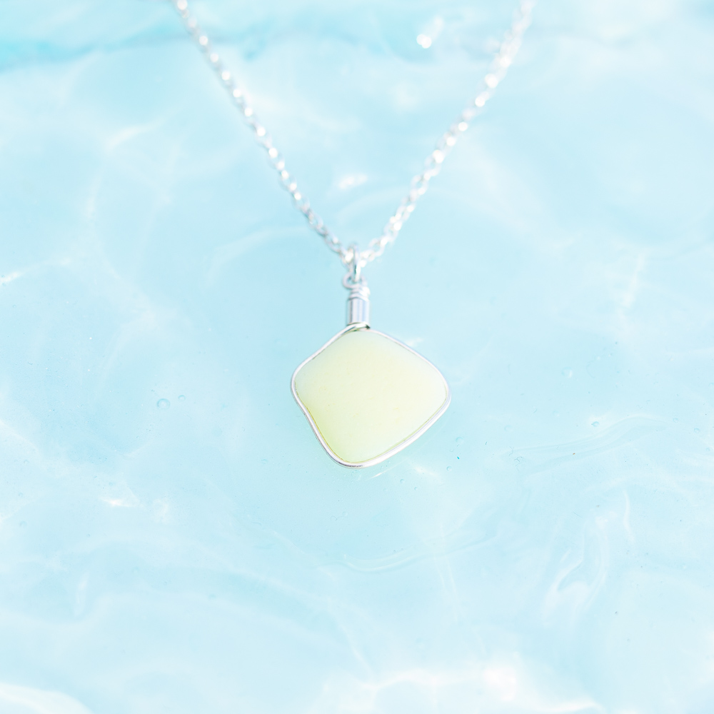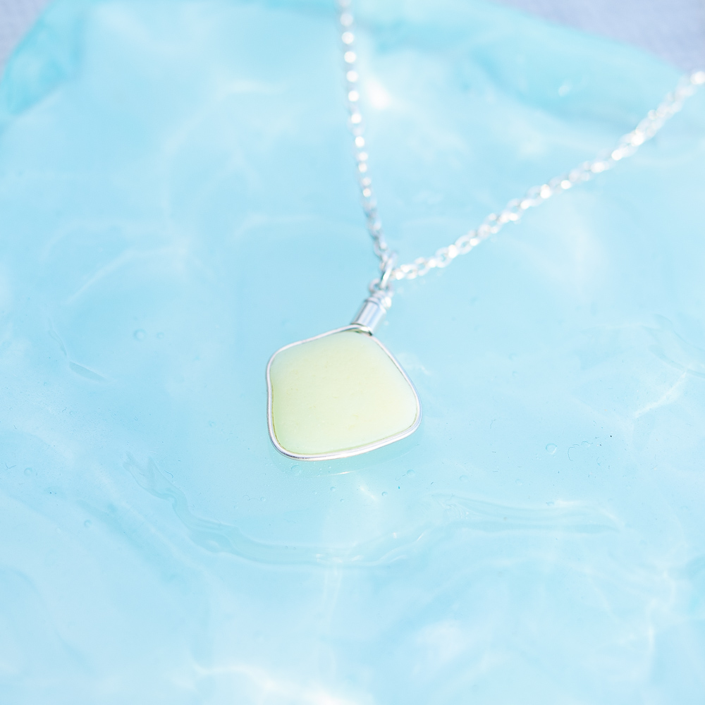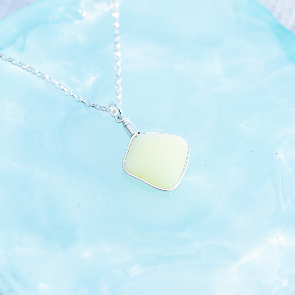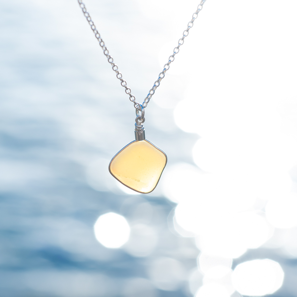 Yellow opaque milk sea glass pendant.