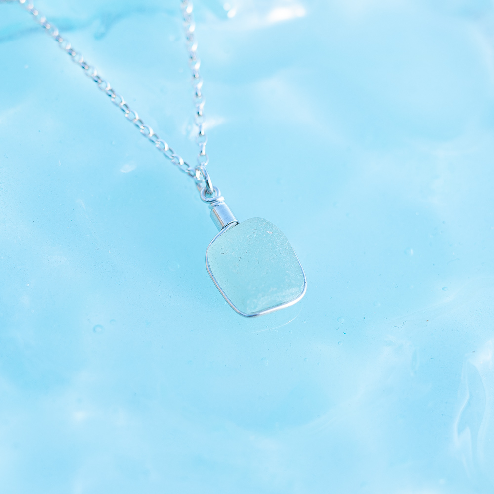 Worn by the waves, recycled from the sea. This recycled sea glass floats in an Ecosilver case that has been carefully embedded around its form, letting the sea glass be the star of the show ✨
