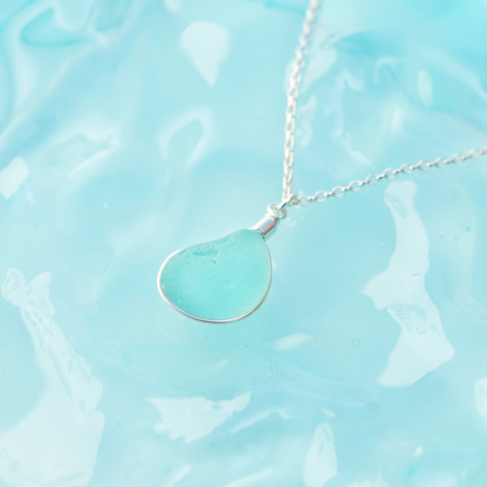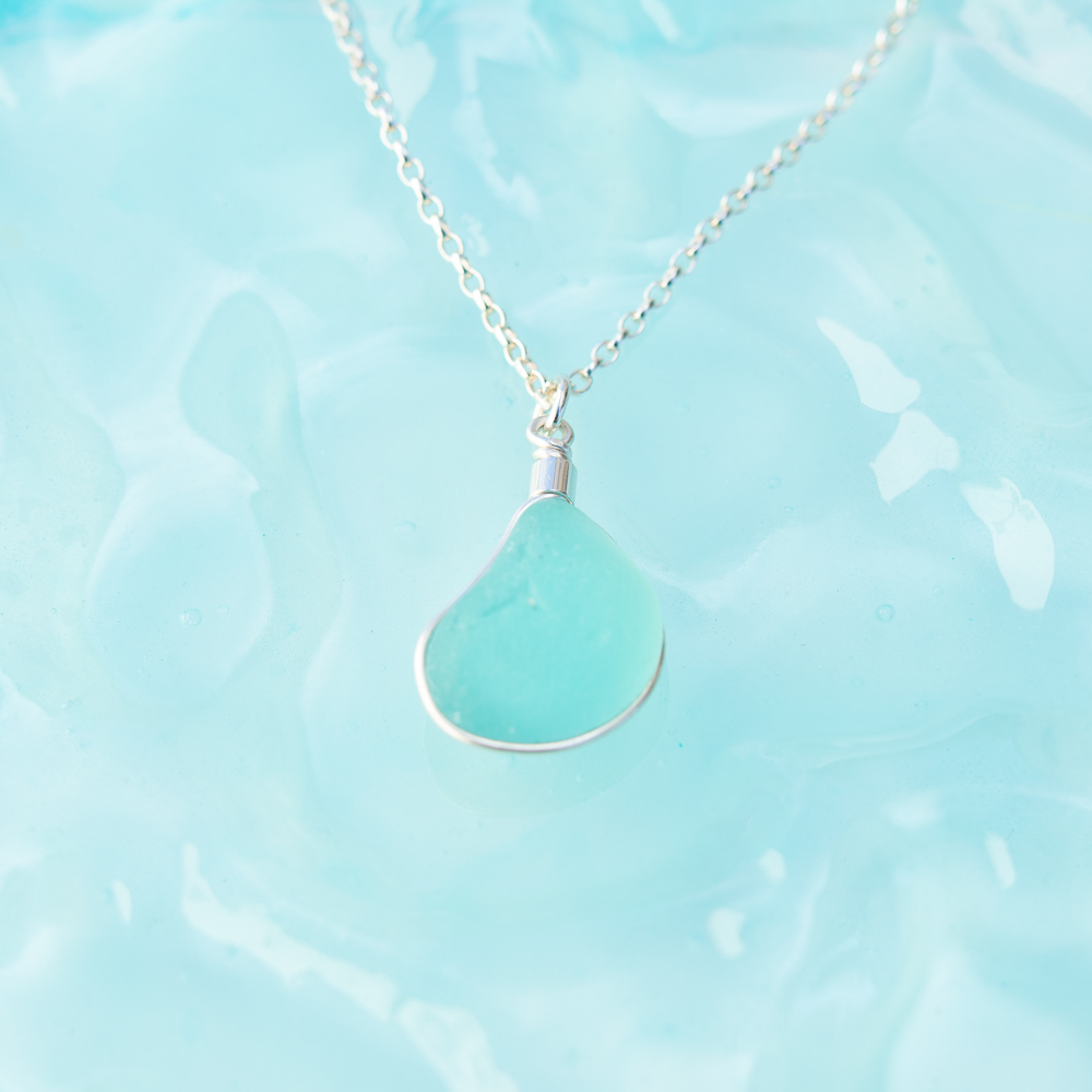 Aqua Sea Glass Pendant.